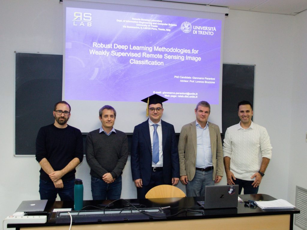 On October 23, Gianmarco Perantoni has succesfully defended his PhD Thesis on "Robust Deep Learning Methodologies for Weakly Supervised Remote
