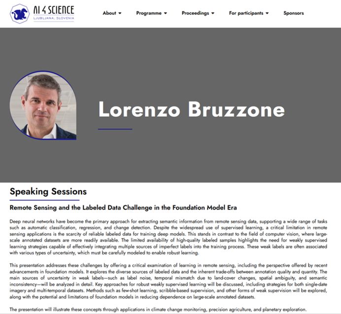 Lorenzo Bruzzone gave a keynote talk at the International Conference AI for Science, held in Ljubljana, Slovenia (https://ai4science.si/). It was