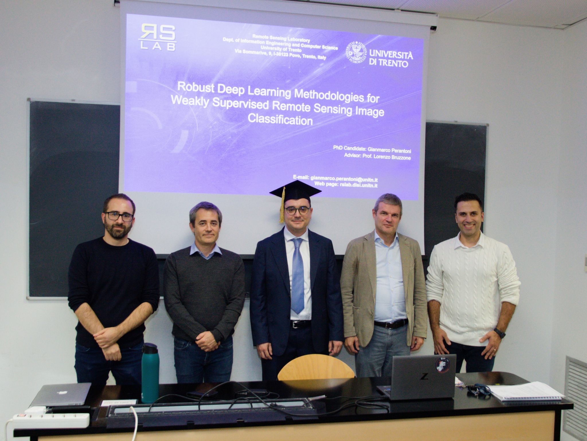 On October 23, Gianmarco Perantoni has succesfully defended his PhD Thesis on “Robust Deep Learning Methodologies for Weakly Supervised Remote Sensing Image Classification“.